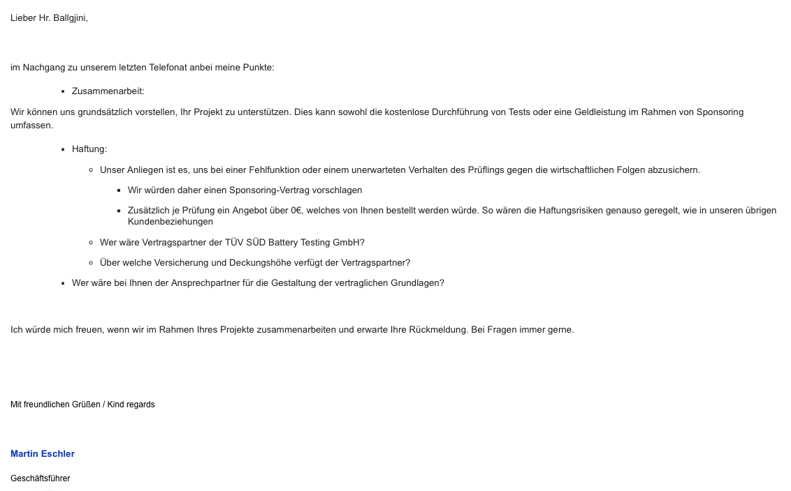 Sponsoring TÜV Süd Battery Testing GmbH